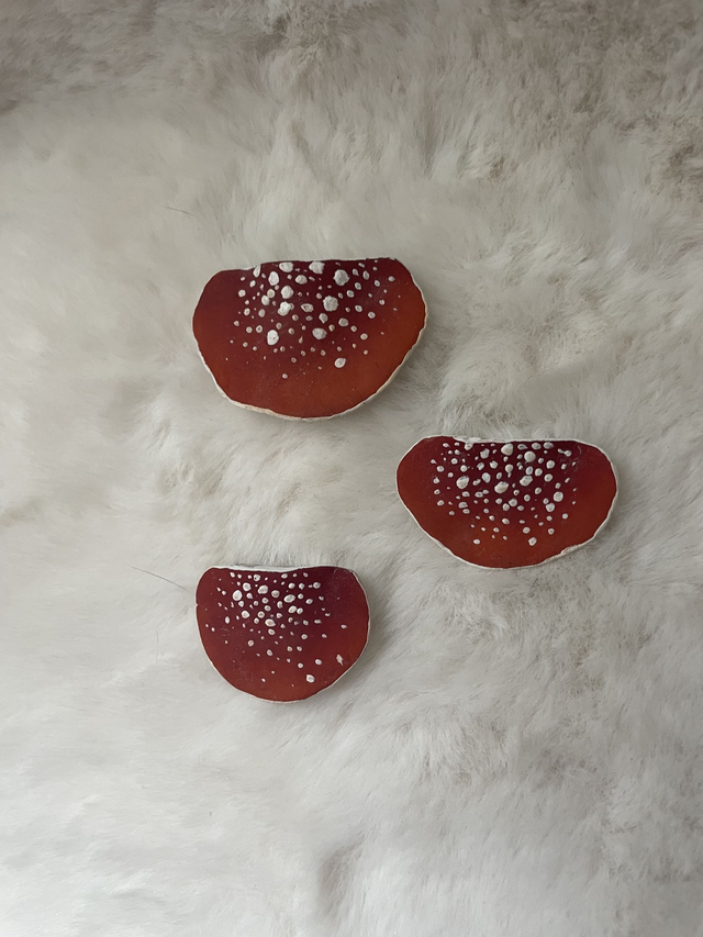 Viorca est un lot de trois aimants en argile représentant des champignons plats aux teintes oranges. Idéal pour vos frigos ou plaque métalliques.